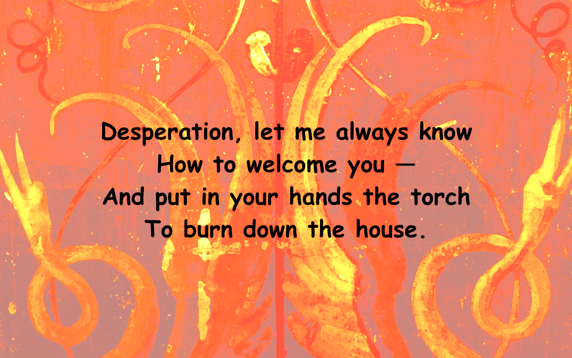 We may think we’re strong and can go it alone, yet it’s very likely that sooner or later we’ll need help. And humans aren’t always willing to help. In such a case, it’s a great relief to find refuge in belief, in the notion that however miserable or misguided we are, and however messed up the world is, there is still Something Better. Something Else. However far we fall, there’s always redemption. Indeed, as Rumi points out, desperation is a powerful conduit to belief:
