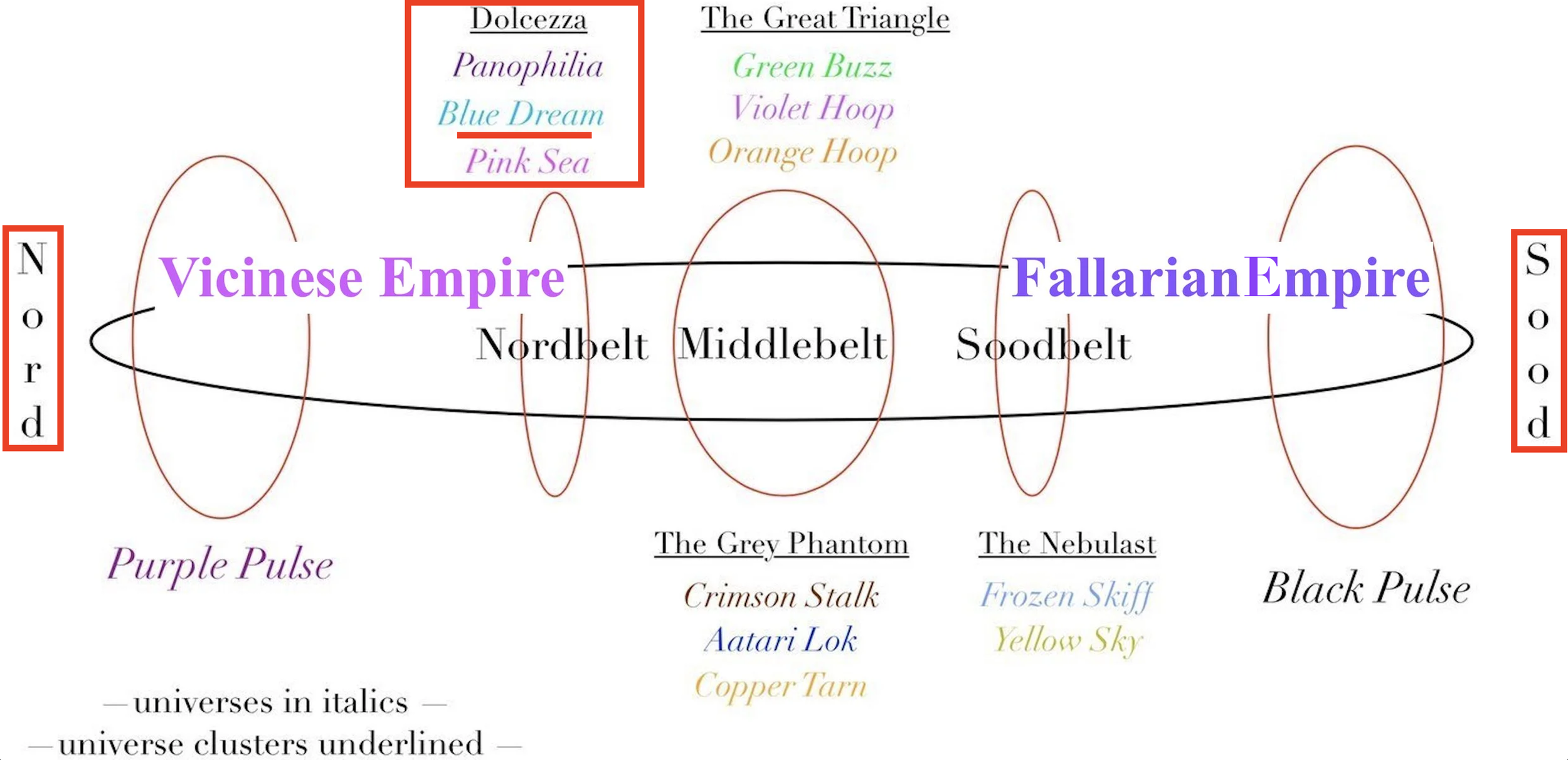 Yet this doesn’t work out in practice. For instance, the Blue Dream universe (in the nordern Dolcezza cluster) contains planets of ideal Order and Beauty beyond anything you can find further nord in the Vicinese Empire.