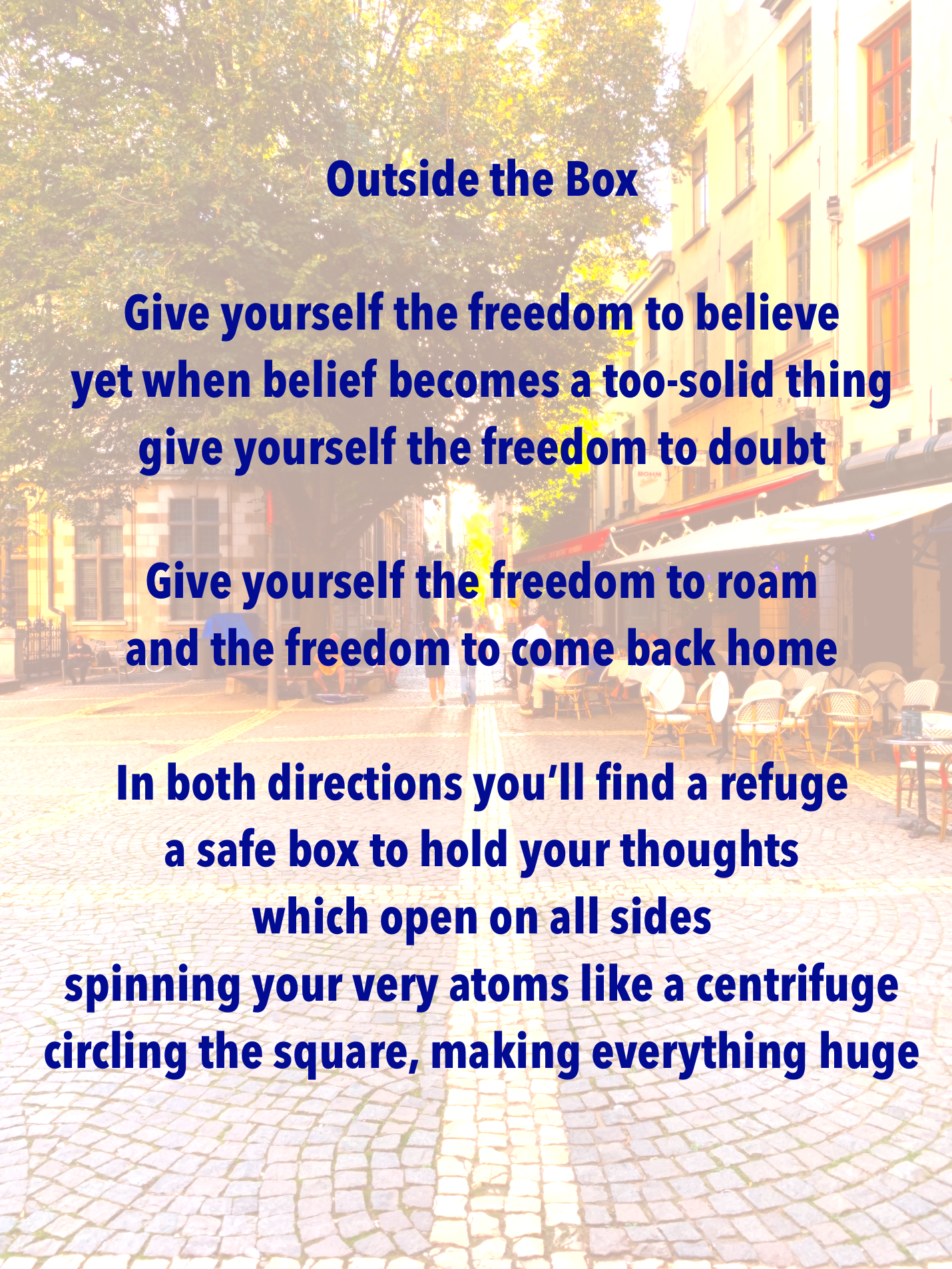 My aim in The Double Refuge is to do something similar. I aim 🔹 to explore ways of seeing and experiencing reality, 🔹 to juxtapose and at times fuse these ways, and 🔹 to integrate questioning and wondering into the framework of our experience. In doing this, I aim to put experience before system, to put active doubt and active belief before doctrines — especially any doctrine that says never the twain shall meet.